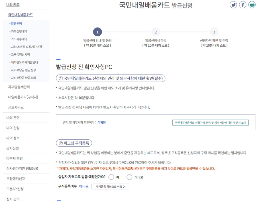 국민내일배움카드 발급신청 버튼을 눌러주십니다.