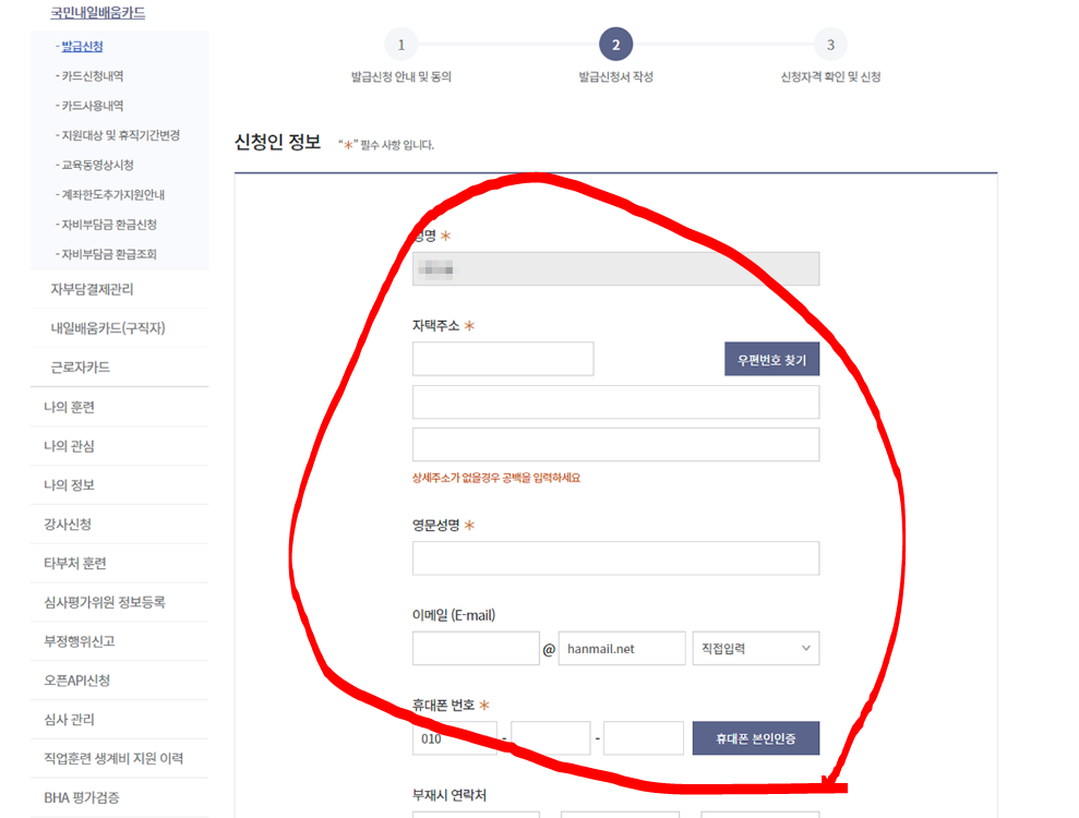 누르셨다면 신청 정보를 입력하시면 되는데요. 최종단계까지 마무리해 줍니다.