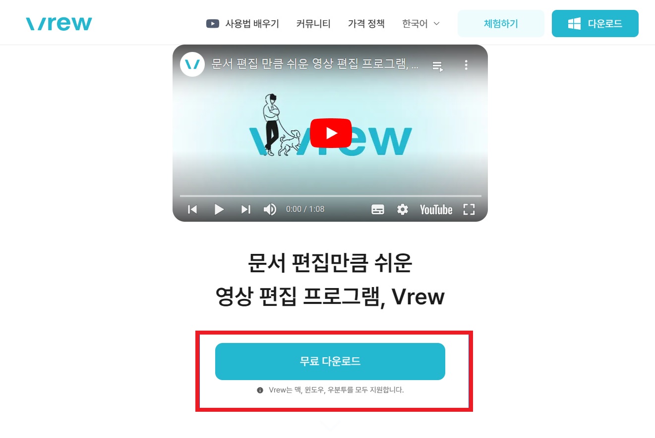 브루(vrew) 자막 프로그램 다운로드(PC) 방법