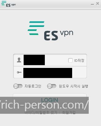 그럼 여기에서 아까 ESVPN 홈페이지에서 가입한 아이디와 비밀번호를 입력하시고 로그인을 해주시면 됩니다!