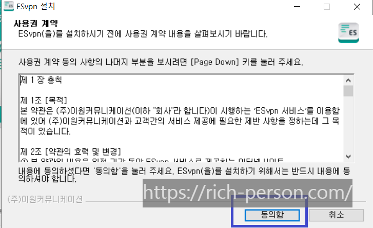 위의 사진에 파란 네모 박스로 표시 된 ESVPN 다운로드 버튼을 눌러주세요