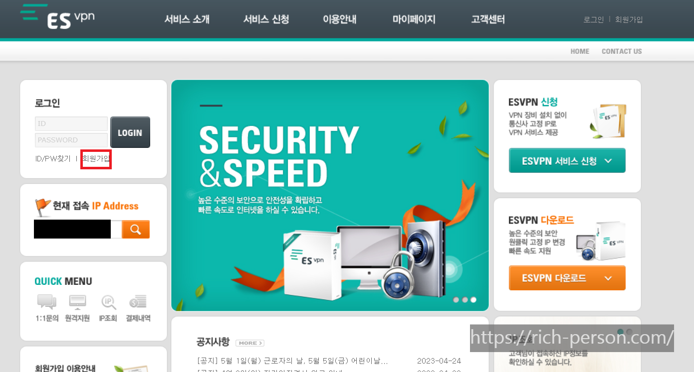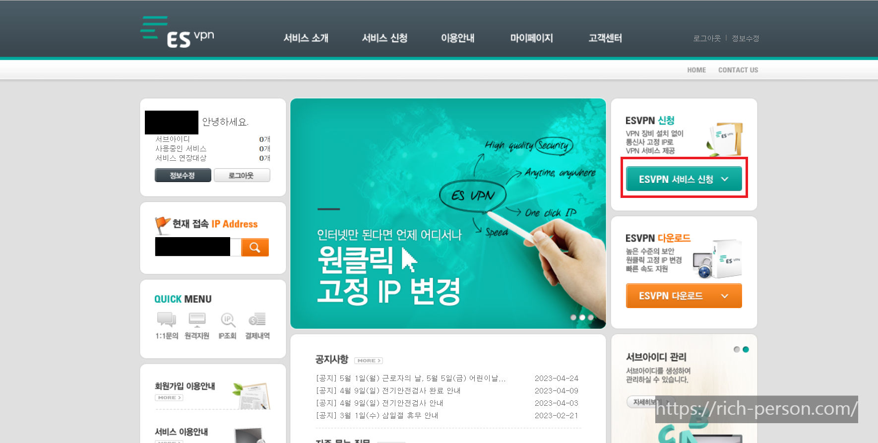 우선 아래의 ESVPN 홈페이지 바로가기 링크 버튼을 클릭해주세요!^^
