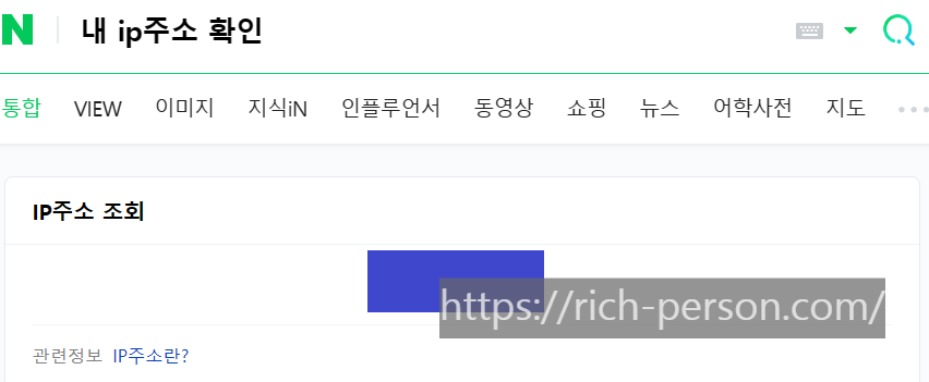 네이버 검색에서 내 IP주소 확인을 통해 지금 현재 내 고정 IP 주소로 변경되었는지 확인도 가능한데요.